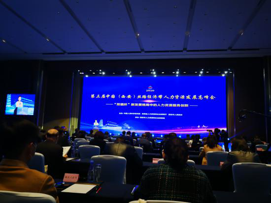2020年11月13日,我公司趙文勝董事長和鄭淼經(jīng)理參加了第三屆中國(西安)絲路經(jīng)濟(jì)帶“雙循環(huán)”新發(fā)展格局中人力資源服務(wù)創(chuàng)新發(fā)展高峰會。會議由國家人社部中國人事科學(xué)研究院、陜西省人社廳、西安市人民政府共同主辦,西安市人力資源和社會保障局承辦。大會以“齊聚新思路、構(gòu)建新格局、共謀新發(fā)展”為主題,共同探討“雙循環(huán)”新發(fā)展中人力資源的服務(wù)業(yè)發(fā)展創(chuàng)新之路,面臨的機(jī)遇和挑戰(zhàn),進(jìn)一步激發(fā)人力資源服務(wù)的創(chuàng)新活力,意為更好的發(fā)展。